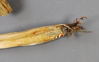 The nematodes also feed on blue stain fungi which often invade dead, dying, or fresh cut timeber. Photo by: USDA Forest Service – North Central Research Station Archive, USDA Forest Service, Bugwood.org.