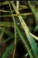 Mycelium growing between leaves of grass. All photos were found at: http://www.cals.ncsu.edu/plantpath/extension/fact_sheets/Turfgrass_-_Managing_Brown_Patch_in_Tall_Fescue_Landscapes.htm as part of a fact sheet on brown patch in tall fescue.