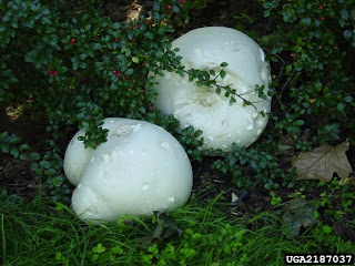 Giant puffball. Photo provided by: Joseph LaForest, University of Georgia, Bugwood.org