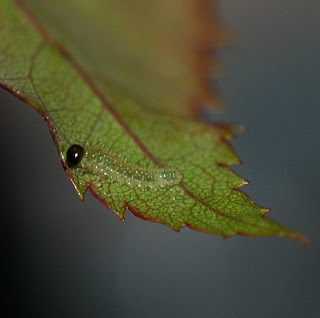 Close-up of currant sawfly larvae