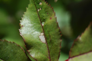Currant sawfly eggs on leaf.