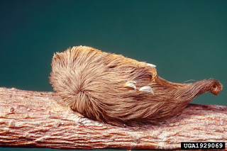 White-marked tussock moth –caterpillar stage (immature). These hairs do not sting. Photo provided by: Brian Kunkel, Ornamentals IPM Specialist, University of Delaware
