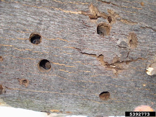 Asian longhorned beetle exit holes and egg laying scar. Photo provided by: Kenneth R. Law, USDA APHIS PPQ, Bugwood.org