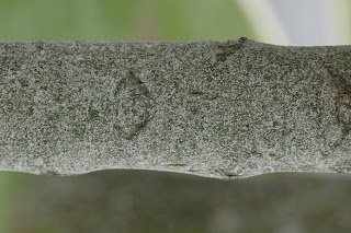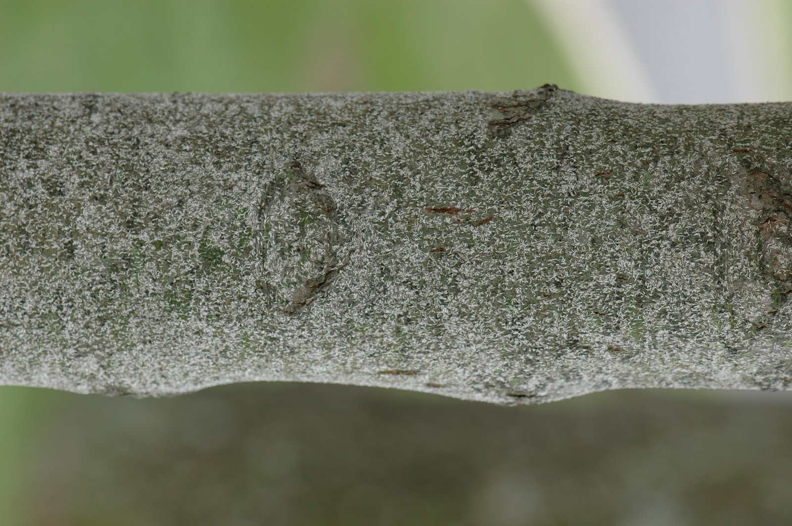 Euonymus scale infestation. Males are elongate and white. Females are gray to brown. Photo provided by: Lisa Ames, University of Georgia, Bugwood.org.