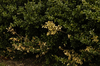 Healthy plant on left and damaged tip from Nantucket pine tip moth on right. Photo provided by: Robert L. Anderson, USDA Forest Service, Bugwood.org.