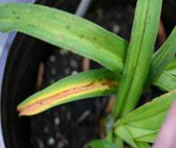 Daylily leaf streak. Photo found at: http://www.umass.edu/umext/floriculture/fact_sheets/pest_management/daylily_rust_streak.htm